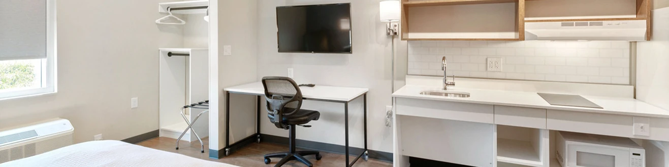 Extended Stay America continues to enhance accessibility for guests with disabilities. For more detailed information on accessibility accommodations, check the webpage for the specific hotel at which you plan to stay. You can also contact the hotel or call 800.804.3724 to discuss any individual needs that you might have.